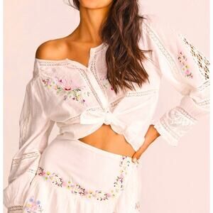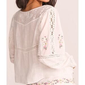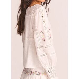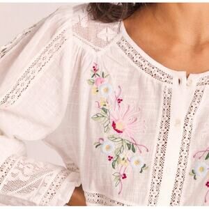 LoveShackFancy Small Lelia Floral Embroidered Floral Cotton Blouse - See Desc