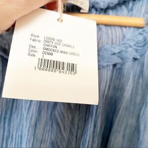 LoveShackFancy Smocked Maxi Dress denim blue sz 1
