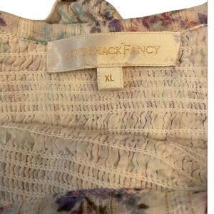 LoveShackFancy Smocked Saba Crop Top Floral Ruffle Blouse White Purple Size XL