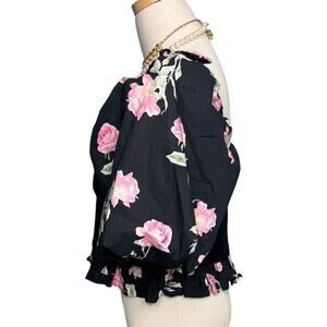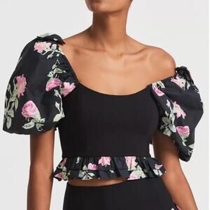 LoveShackFancy Spirit cropped floral puff sleeve stretch-jersey top size XL
