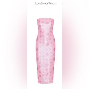 LoveShackFancy Stasia Sequin Dress Pink Strapless Evening Cocktail Party Sz 6 Preowned condition.