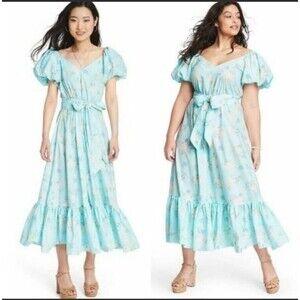 LoveShackFancy Target Estelle Dress in Blue Floral Print Size 14 MISSING BELT