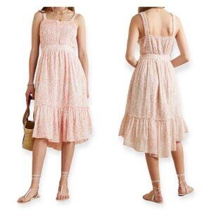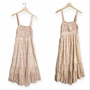 LoveShackFancy Tove Floral Print Midi Dress, Size 2, Vanilla Foam