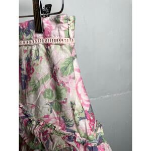 LoveShackFancy White Cream Ruffled Skater Mini Skirt Size 0 Pink Floral