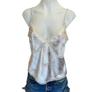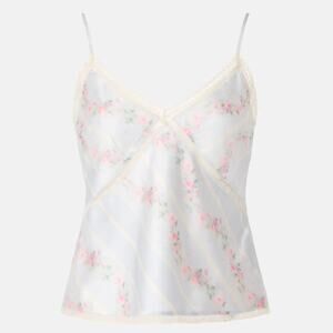 LoveShackFancy White Floral Camisole Top MEDIUM Coquette Satin Designer $245