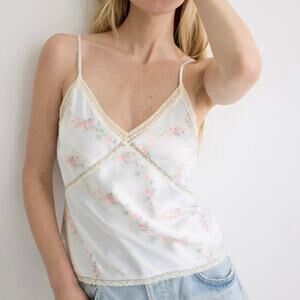 LoveShackFancy White Floral Camisole Top MEDIUM Coquette Satin Lace Designer $245