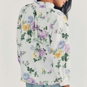 Willow Top is reimagined in lightweight baby corduroy with an ever-blooming chintz floral print. This staple shirt features a shirred ruffle collar with a tie and a modest v-neck. The bodice has a relaxed fit, framed by blouson sleeves that narrow to tall cuffs with fabric-covered buttons. Shown here in Spring Garden.