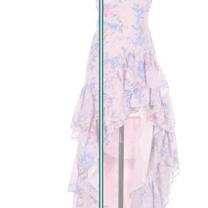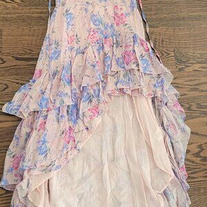 LoveShackFancy Winslow floral soft pink and lilac ruffle high-low dress with lining. Size 10. Worn once like new. No imperfections.