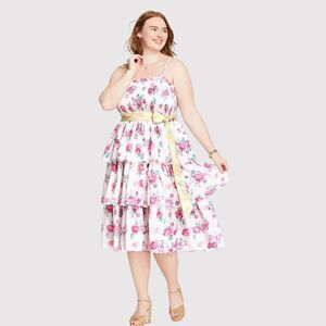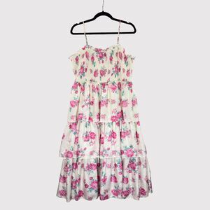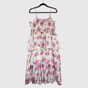 LoveShackFancy Womens Dress Elise Midi Smocked Floral Layered Cottagecore XL
