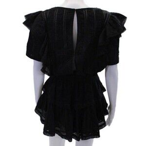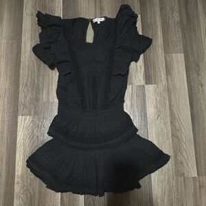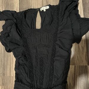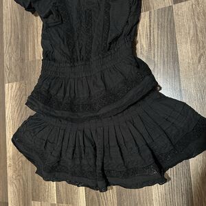 Love Shack Fancy Womens Square Neck Tiered Dress Black Cotton Size XS. Condition is Pre-owned - Good.