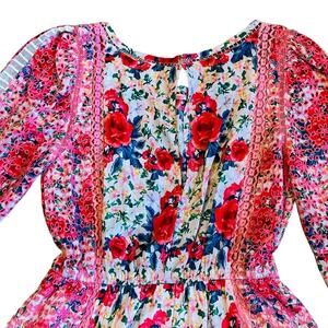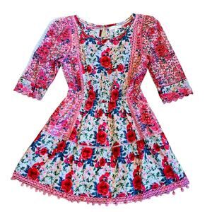 LoveShackFancy Women’s Sz M Floral Lace Pom Pom Novalie Dress in Rush of Red. Excellent condition.
