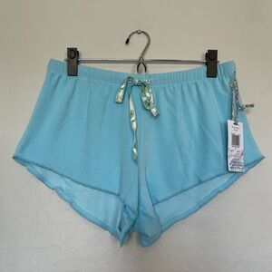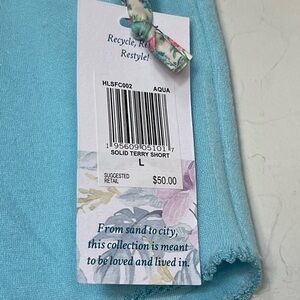 LoveShackFancy X HURLEY SOLID TERRY WALKSHORTS size large. New with tag. Aqua color. LOVESHACKFANCY X HURLEY COLLABORATION