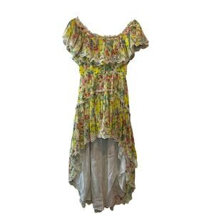 LoveShackFancy Yellow Floral Weller High Low Maxi Dress Size Small