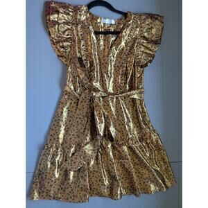 LoveShackFancy Zoya Mini Dress Size 4 Safari Metallic Ruffle Revolve #1B502