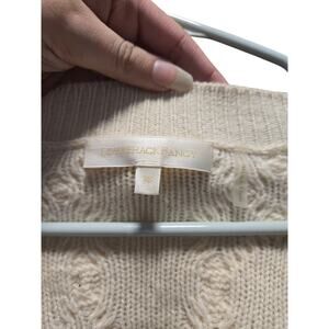 This LoveShackFancy sweater features a cropped knit design in crisp white, accented with a charming button-front closure. Designed in a size XS, it offers a flattering, fitted silhouette that pairs beautifully with high-waisted bottoms. The soft, lightweight fabric makes it a versatile piece for layering or wearing on its own in transitional weather.