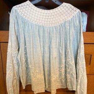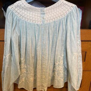 LoveShackFancy women's button back log sleeve blouse size small in a pale minty blue. Worn once