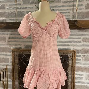 Size 2 and on size 2 mannequin, pretty pink and white checked cotton dress. Fully lined. No flaws!