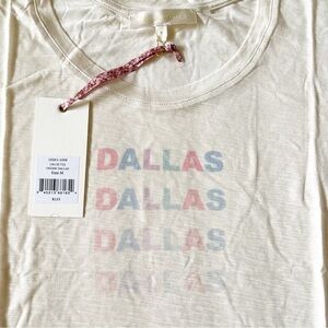 New with tags! LoveShackFancy relaxed fit Calix tee in cream featuring “Dallas” logo in progressively faded, multicolor, pastel block letters. Thin, lightweight 100% Viscose fabric - perfect for hot Texas summers. Women’s size medium. Please see all photos as part of description. Smoke-free home!