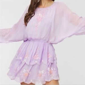 LoveShackFancy x Free People Bridgely Lilac Purple Embroidered Chiffon Mini