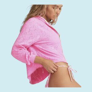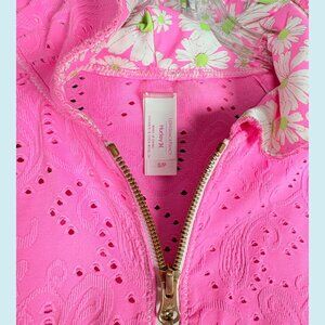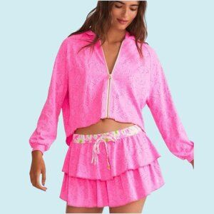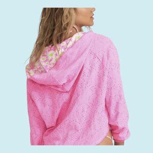 LoveShackFancy x Hurley Hoodie Small Pink Eyelet Paisley Embossed Zip Stretch