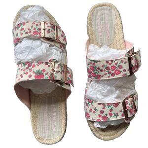 LoveShackFancy x Manebi Nordic Espadrille Slide Sandal Strawberry Print Size 9.5