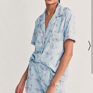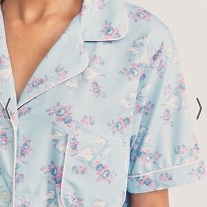 In collaboration with Morgan Lane, the Katelyn Fiona PJ Set is made from a cloud-soft modal jersey printed with an iconic Love Shack Fancy bow floral. The Katelyn Fiona includes a short sleeve cozy top and adorable shorts with contrast satin binding. The shorts have adjustable button tabs at the waist for added detail and comfort. Match your loved ones with our Mini Rosie version. Shown here in Sky Sunrise.