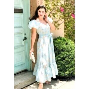 LoveShackFancy x Target Estelle Sky Blue Floral Puff Sleeve Maxi Dress NWT