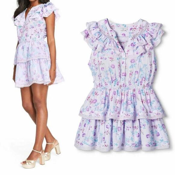 LoveShackFancy x Target Lou Double Ruffle Dress Purple Medium Coquette Romantic
