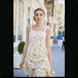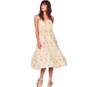 LoveShackFancy Ann Maxi Dress in Floral Sunshine Cotton Linen Blend Size Small