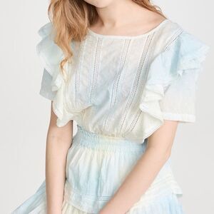 LoveShackFancy Hand Dyed Natasha Heritage Mini Dress in Lily Pond. Size P.