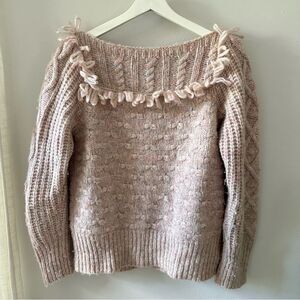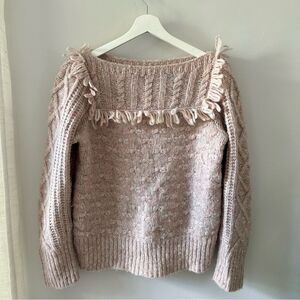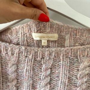 Soft Alpaca/Wool/Poly blend. Color is a pink confetti with specks of blue, white.