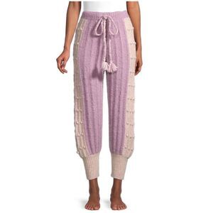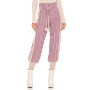 Knit joggers with a colorblock design, wool-blend fabrication, tassel drawstring waist, and slim-fit cut.