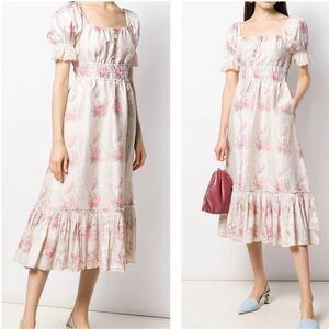 LoveShackFancy Terrence Floral-Print Ruffled Silk Dress