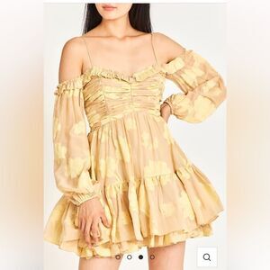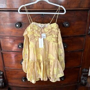 LoveShackFancy Zennia Off-Shoulder Silk Mini Dress
