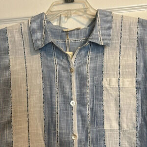 LoveStitch NWT women’s white and blue striped button down blouse size small