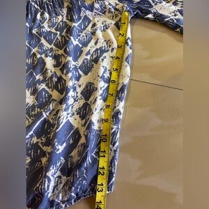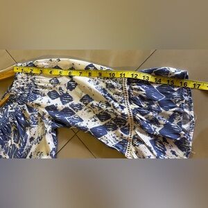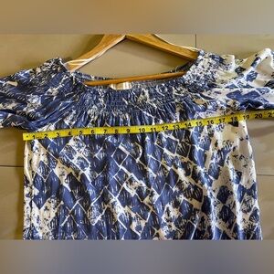 LoveStitch Tropical Print blue and white blouse Off the Shoulder Smocked Bell Sleeves with knitting Blouse size S
