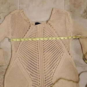 In good used condition no size tag bust is 16 inches and is about 27 inches long. Size small according to chart. Easy to wear looks amazing with any color and any bottoms. Feel free to ask questions and make offers