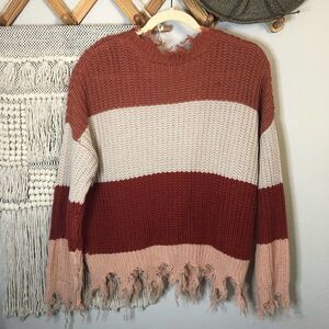 Love Tree Color-Block Distressed Varsity Sweater size Medium. Excellent condition