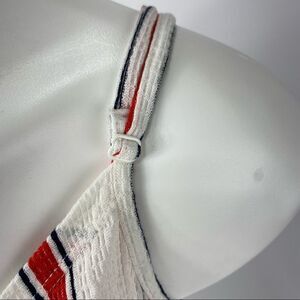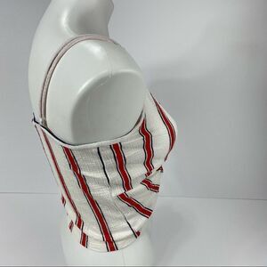Love Tree Crop Top Waffle Knit Knotted Front Stripe Red White Blue NWOT L