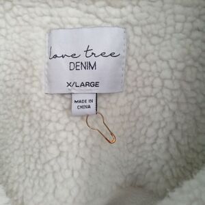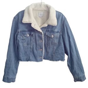 Love Tree Cropped Sherpa Lined Denim Jacket Size XL Blue Raw Hem