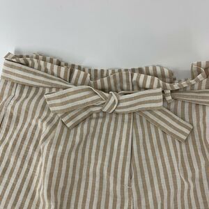 Love Tree Brand High Rise Vertical Striped Paper Bag Waist Shorts With Belt Womens Size Medium White & Tan Casual Bottoms