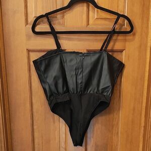 Stylish black bodysuit with pleated bust. Adjustable straps for a perfect fit. Ideal for evening wear.