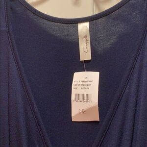 Loveappela Midnight Navy V Neck Jersey Maxi Dress, size medium. New with tags! Soft gathers atop the wide straps and on either side of the smooth waistband shape the plunging V-neck and ankle-grazing lightweight skirt of a lithe maxi dress cut from soft, supple jersey.