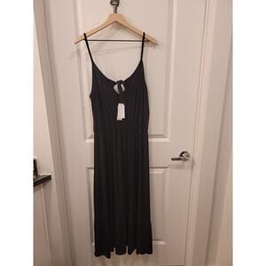 Effortlessly chic and versatile, this Loveapella black sundress features a flattering tie front detail and a flowy silhouette that drapes beautifully to the ankle.