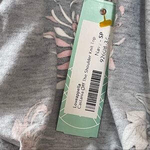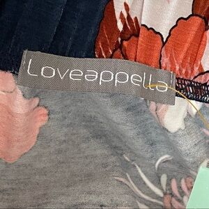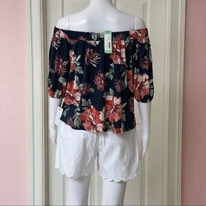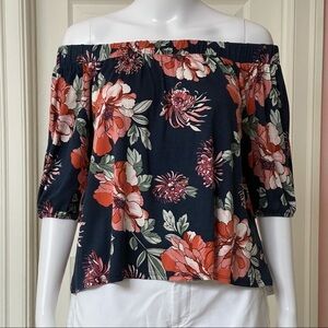 New with tag. Loveappella Off The Shoulder Knit Top. Size: Small Petite. Color: Navy/Floral.