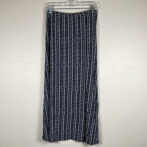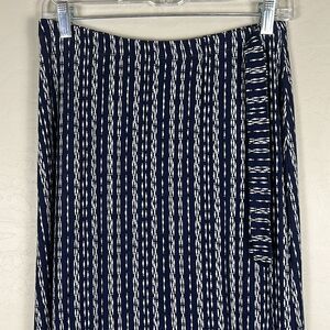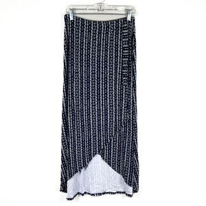 Loveappella Skirt Navy White Print Faux Wrap Hi Low Maxi Side Tie Waist M NWT