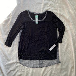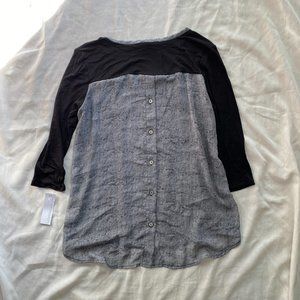 New with tags! Extra soft Tshirt material on the front/sleeves, sheer gray material on the back with buttons. Super cute! 3/4 sleeve.