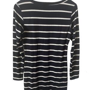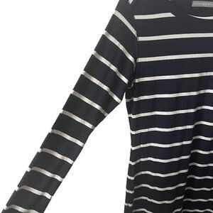 Loveappella stretch fit, long sleeve, striped blue and white knit dress