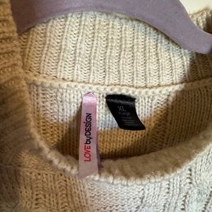 LovebyDesign Women's Cream Cable Knit Sweater Size XL Cold Shoulder
