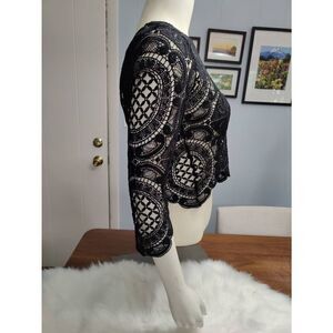 Lovecat lace crop top with zippered back. This is a beautiful blouse, the lace is undamaged. Note* This blouse does not have a liner, it only consists of lace. Pit to pit 16" length from shoulder to hem 15". Measurements are approximate. Bundle and save!